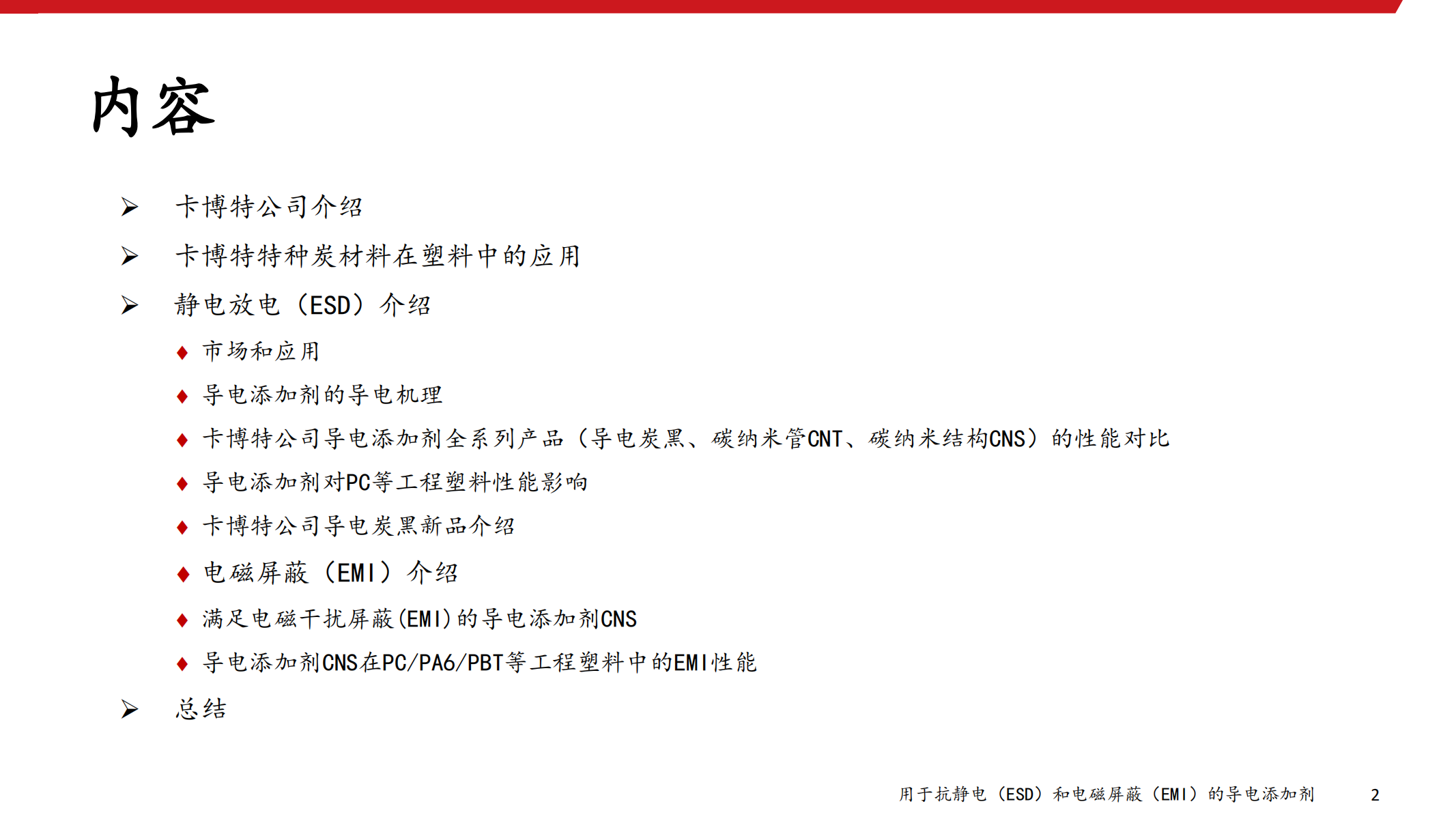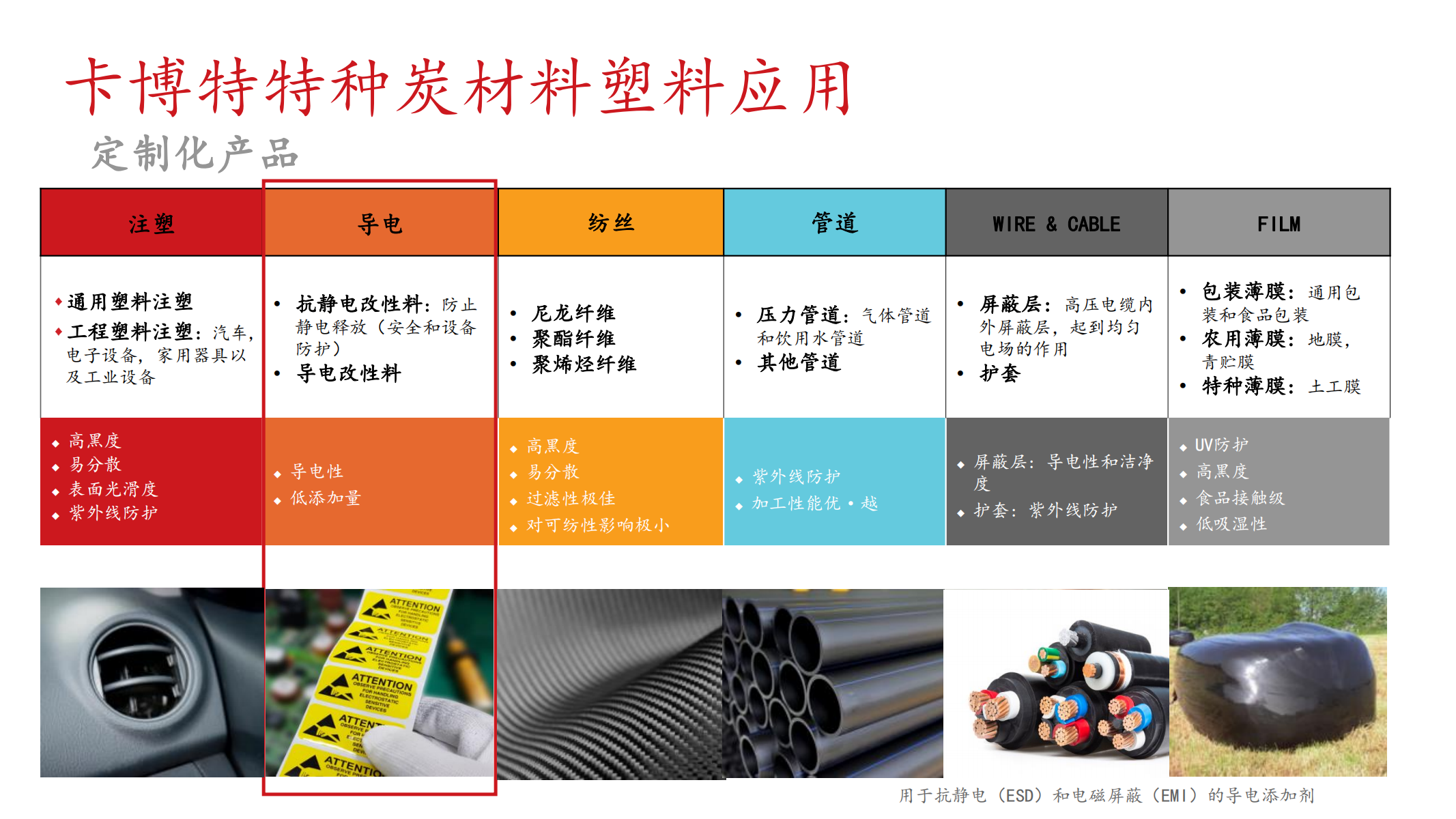 用于抗静电(ESD)和电磁屏蔽(EMI)的导电添加剂