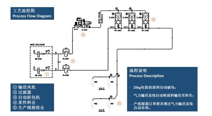 物料采用密闭管道输送无异物进入;